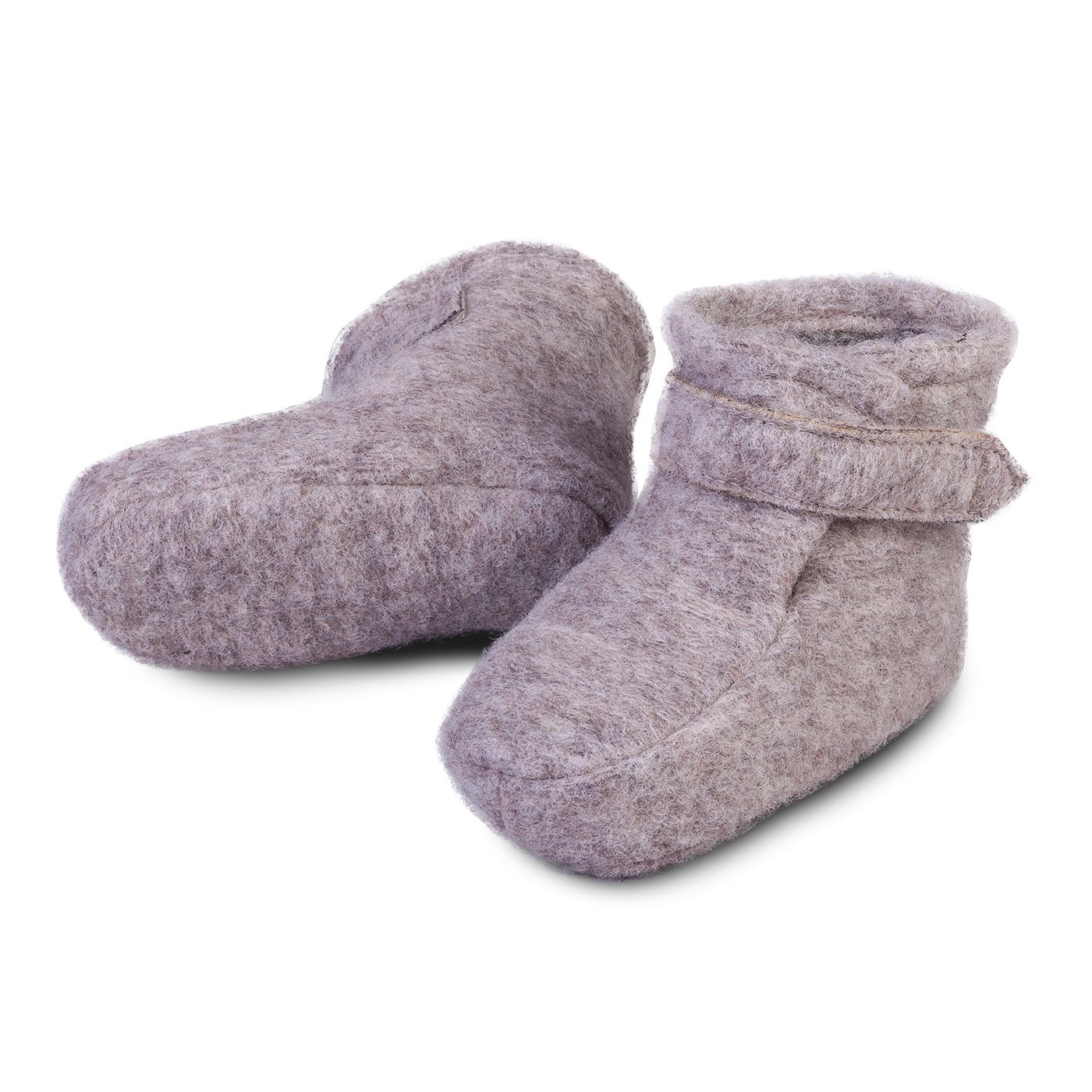 Chaussons pour bébé en laine avec fermeture par scratch.