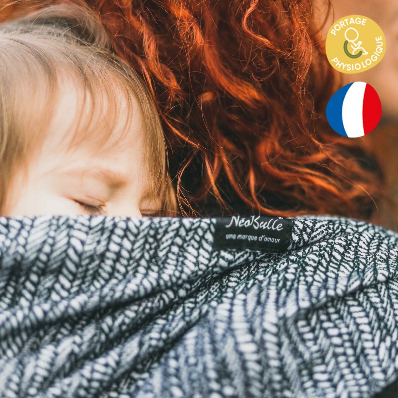 L’écharpe de portage Jungle Monochrome de Néobulle est une écharpe de portage très soutenante et polyvalente.