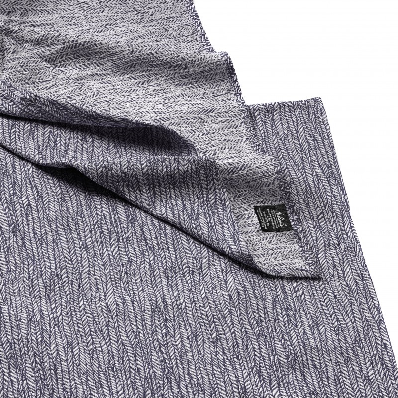 Le tissu d’écharpe est en jacquard de 300 g/m2 – un tissu épais et texturé, très soutenant. Le jacquard est un tissage très prisé pour les tissus d’écharpe qui assure une très bonne souplesse, élasticité dans la diagonale et un soutien agréable. C’est grâce au tissage jacquard que l’esthétique si particulière de cette écharpe est possible.
