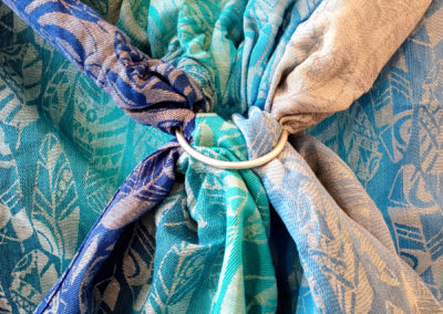 Le sling est une écharpe courte, avec deux anneaux cousus à une de ses extrémités. Il est très rapide et facile d’installation, une fois qu’on a pris le coup de main. L’apprentissage de l’utilisation d’une écharpe sling est très rapide. Le Sling s’installe et s’ajuste facilement grâce aux 2 anneaux en aluminium sans faire de nœuds.